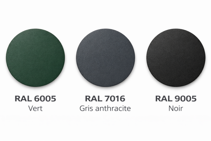 Disponible dans les coloris standards (vert, gris anthracite, noir…), elle assure une parfaite harmonie avec vos panneaux rigides, poteaux et accessoires. Sa formule est spécialement conçue pour résister aux intempéries, aux UV et à la corrosion.